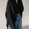 Basit Uzun Kollu Gevşek Düğmeli Pileli Düz Renkli Kavuz Yaka Bozlar Gömlekler Üstler